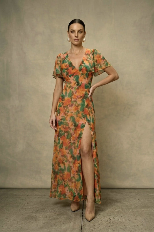 The Sun-Drenched Flora Maxi Dress embodies the essence of spring renewal through its lush botanical...