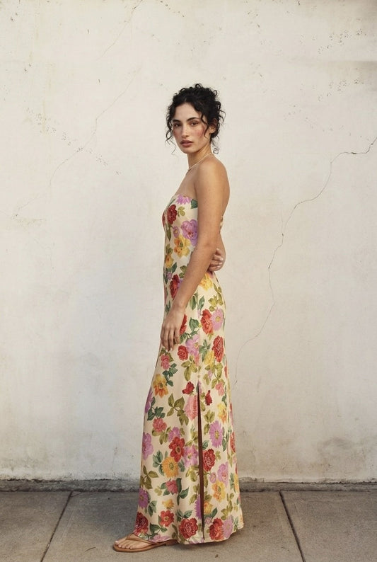 The Painted Garden Strapless Maxi Dress