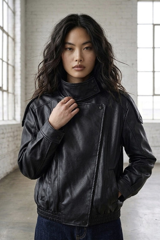 Elevated high-neck faux leather with a relaxed, modern silhouette — designed for year-round versatility. This...